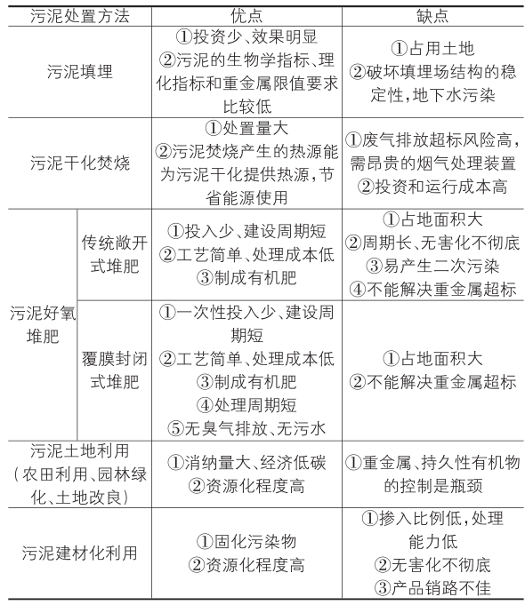 在我國(guó),城鎮(zhèn)污水處理廠產(chǎn)生的大量副產(chǎn)物-市政污泥,富集了污水中大量有機(jī)物且含水率高,成分復(fù)雜等特點(diǎn),具備了“資源”和“污染”的雙重屬性。目前污泥處置的方式多種多樣,包括衛(wèi)生填埋、干化焚燒、堆肥、土地利用及建材利用等,各種處置方式的優(yōu)缺點(diǎn)各不同。